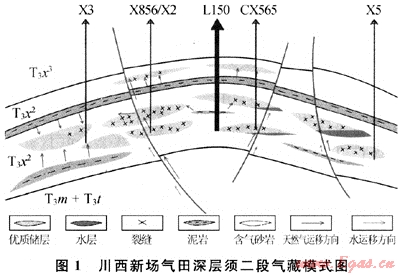 上三疊統(tǒng)須家河組氣藏是目前四川盆地西部(以下簡(jiǎn)稱川西)坳陷深層天然氣勘探熱點(diǎn),亦是儲(chǔ)產(chǎn)量增長(zhǎng)的主要層段,其主力氣藏為須家河組須二段氣藏。2000年,在川西新場(chǎng)氣田須二段中部T3x24(4砂組)儲(chǔ)層成功鉆獲無(wú)阻流量151.4×104m3/d、穩(wěn)定產(chǎn)量38×104m3/d的高產(chǎn)工業(yè)氣井——X851井,展現(xiàn)了川西坳陷中段深層致密碎屑巖氣藏巨大的勘探潛力。但氣藏的勘探開發(fā)難度極大,其后在同一構(gòu)造帶上部署的CX560、CX565、CL562、L150井等多口深井效果并、不理想且產(chǎn)能差異極大,主要原因?yàn)閮?chǔ)層為典型致密碎屑巖儲(chǔ)層,受裂縫網(wǎng)絡(luò)分布影響,氣藏非均質(zhì)性極強(qiáng)[1~2]。