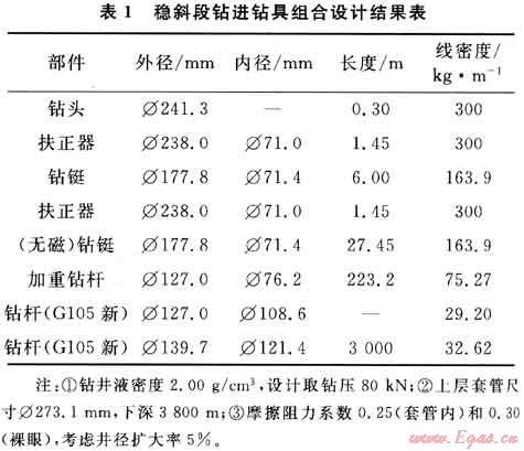 穩(wěn)斜段鉆進(jìn)鉆具組合設(shè)計(jì)結(jié)果如表1所示。