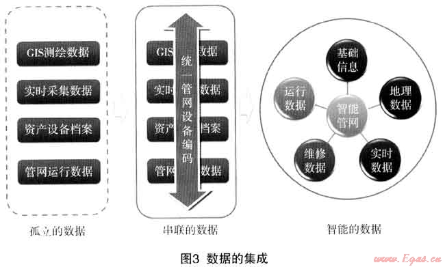 從孤立的數(shù)據(jù)到可以串聯(lián)的數(shù)據(jù)最終達(dá)到共享數(shù)據(jù)中心智能數(shù)據(jù)的目標(biāo),真正實(shí)現(xiàn)管網(wǎng)數(shù)據(jù)的完整性、可靠性、關(guān)聯(lián)性、有效性、實(shí)時(shí)性。從數(shù)據(jù)的集成到?jīng)Q策的智慧,是各個(gè)行業(yè)企業(yè)管理信息化發(fā)展的必然途徑和最終目標(biāo)。
