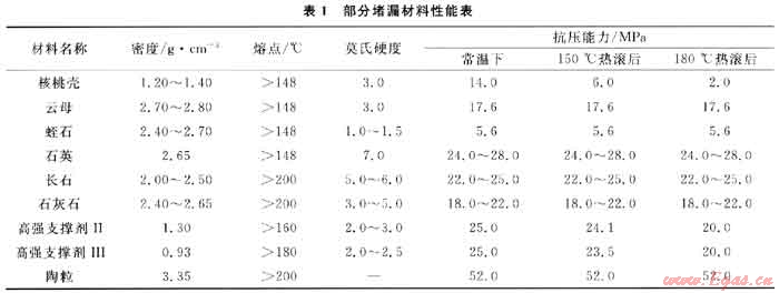 根據(jù)橋接堵漏封堵裂縫的要求,對以往鉆井施工中常用的惰性堵漏材料,以及新選的長石、高強支撐劑Ⅱ型、高強支撐劑Ⅲ型、等進(jìn)行了抗溫、抗壓等實驗,結(jié)果見表1。