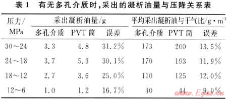 多孔介質(zhì)存在對(duì)凝析油氣相態(tài)具有重要意義。20世紀(jì)70年代加拿大用簡(jiǎn)單實(shí)驗(yàn)得出“多孔介質(zhì)對(duì)定容衰竭過(guò)程影響在實(shí)驗(yàn)誤差范圍之內(nèi)”的結(jié)論,使許多人不再研究了。筆者沒(méi)有相信這個(gè)結(jié)論,幾代人從理論、實(shí)驗(yàn)進(jìn)行了研究。隨著科技進(jìn)步,俄羅斯最近發(fā)表了好幾篇文章,有新認(rèn)識(shí),因此中國(guó)很有必要再深入研究下去。其中一項(xiàng)研究成果如下。