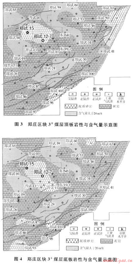 最新研究結(jié)果表明:區(qū)內(nèi)15#煤層底板厚度介于1.0~2.55m的泥巖,局部為粉砂巖;3#煤層底板為泥巖、粉砂巖,2個(gè)主要煤層的底板巖性均具有較好的封擋性能。相對(duì)而言,雖然3#煤層底板的粉砂巖多于15#煤層,封擋性略遜于15#煤層,但煤層氣以吸附氣為主,影響不大。