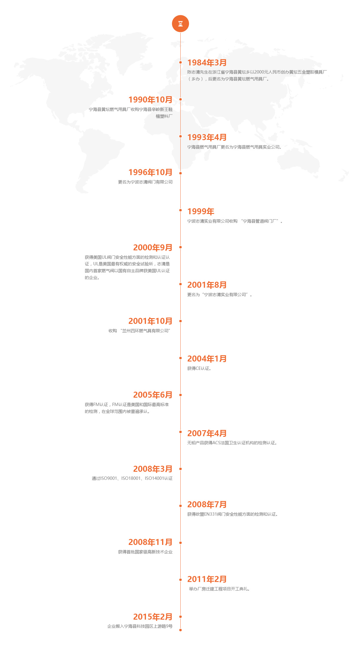 寧波志清實(shí)業(yè)有限公司創(chuàng)建于1984年,位于風(fēng)景秀麗、人杰地靈的浙江寧海;是一家集研發(fā)、制造、銷售為一體的高新技術(shù)企業(yè)。公司占地57700平方米,建筑面積62000平方米;擁有現(xiàn)代化的辦公環(huán)境、先進(jìn)的生產(chǎn)設(shè)備以及一批高素質(zhì)科研技術(shù)人員、高級(jí)管理人才。公司本著“品質(zhì)保證,質(zhì)量為本”的品質(zhì)理念,率先通過(guò)ISO9001質(zhì)量管理體系、ISO14001環(huán)境管理體系、OHSAS18001職業(yè)健康安全管理體系、壓力管道元件安全體系等認(rèn)證。
