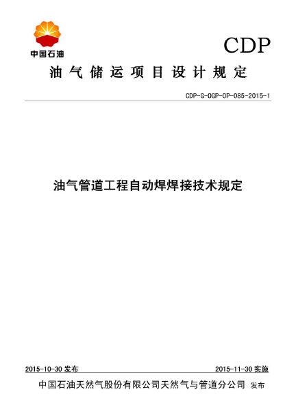 本文件規(guī)定了陸地石油天然氣管道自動(dòng)焊的焊接施工方法和管理要求。