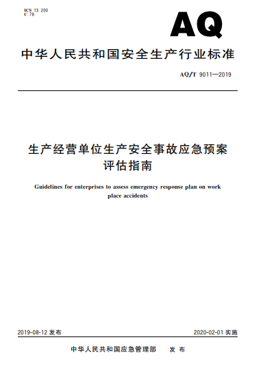 生產(chǎn)經(jīng)營單位生產(chǎn)安全事故應(yīng)急預(yù)案評估指南AQ/T 9011-2019